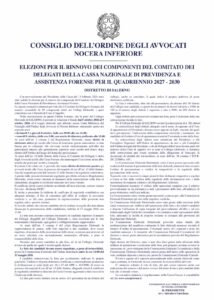 ELEZIONI PER IL RINNOVO DEI COMPONENTI DEL COMITATO DEI DELEGATI DELLA CASSA NAZIONALE DI PREVIDENZA E ASSISTENZA FORENSE PER IL QUADRIENNIO 2027 – 2030 – Consiglio dell'Ordine degli Avvocati Nocera Inferiore
