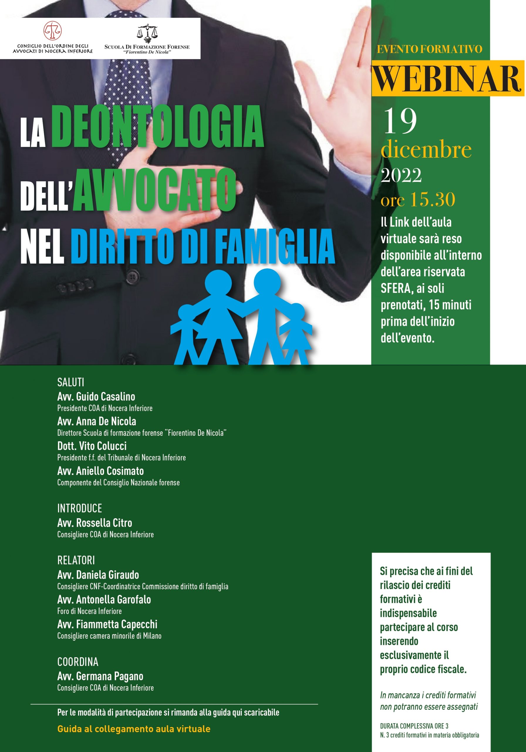 19/12/2022: WEBINAR: “LA DEONTOLOGIA DELL’AVVOCATO NEL DIRITTO DI FAMIGLIA” – n. 3 crediti formativi in materia obbligatoria