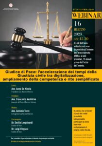 16/03/2023: WEBINAR: “Giudice di Pace: l’accelerazione dei tempi della Giustizia civile tra digitalizzazione, ampliamento della competenza e rito semplificato” – n. 3 crediti formativi in materia non obbligatoria